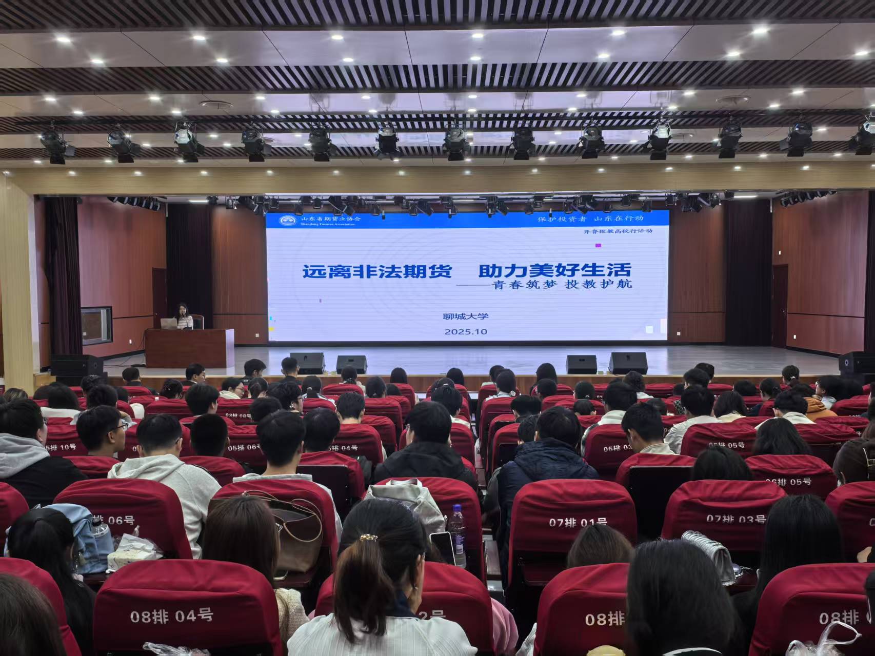 2025年10月17日,“青春筑梦 投教护航”——齐鲁投教高校行活动聊城站在聊城大学成功举行。本次活动是在山东证监局的指导下,由山东省期货业协会主办,中国银河证券股份有限公司聊城东昌西路证券营业部、聊城大学协办,旨在普及金融知识,提升高校学生金融素养与风险防范意识,树立理性投资理念。
