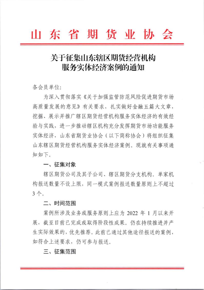 关于征集山东辖区期货经营机构服务实体经济案例的通知