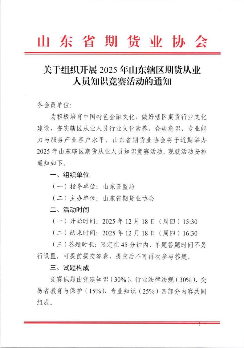 关于组织开展2025年山东辖区期货从业人员知识竞赛活动的通知