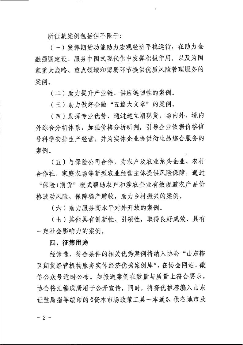 关于征集山东辖区期货经营机构服务实体经济案例的通知