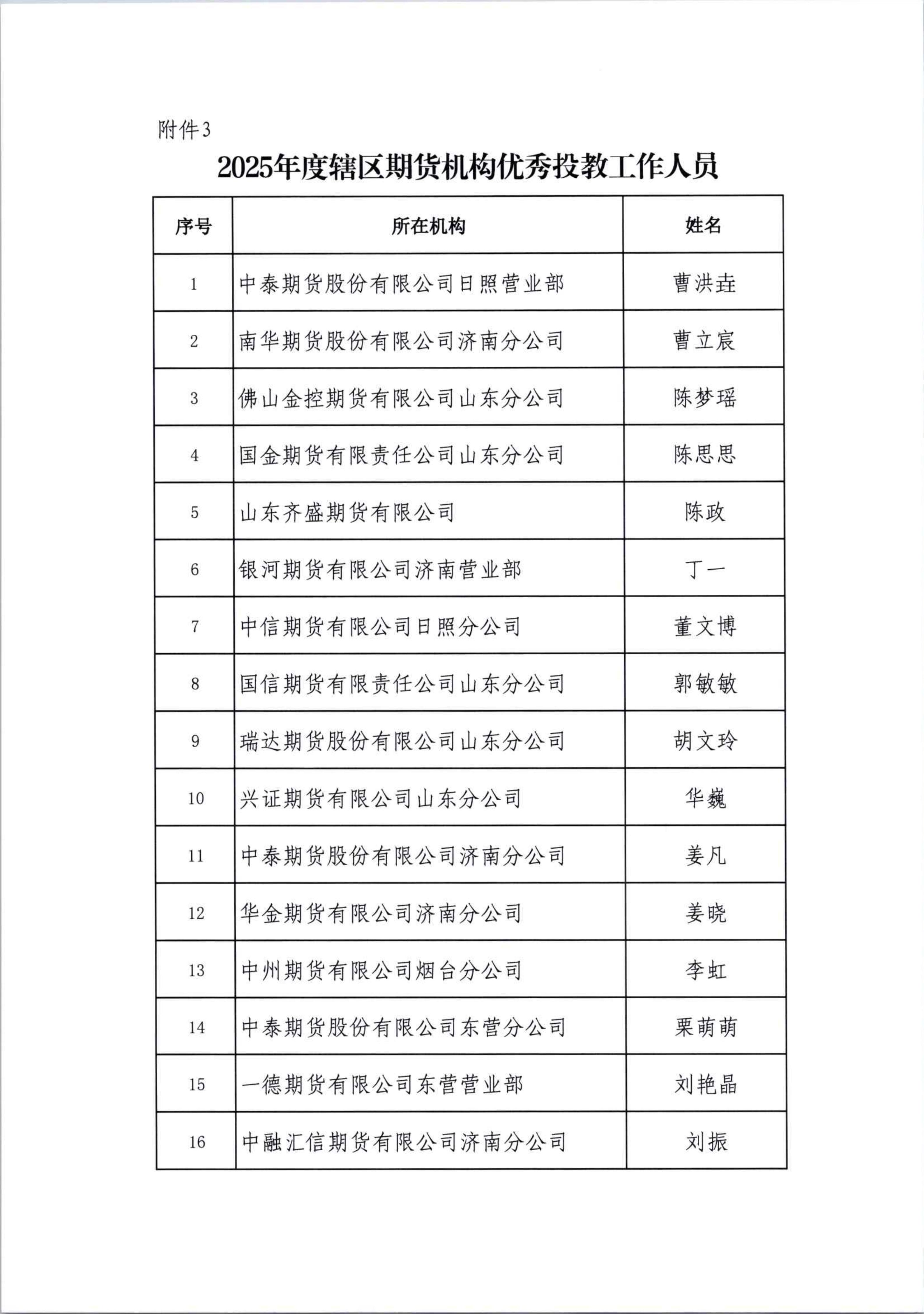 以下是山东辖区2025年度期货机构优秀投教会员单位及工作人员获奖名单: